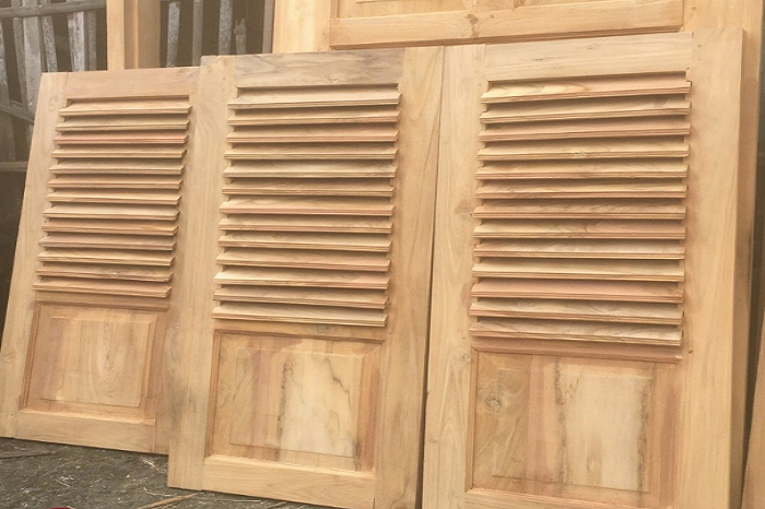 Kayu jati, mahoni, atau kamper dikenal tahan terhadap cuaca dan rayap, menjadikannya ideal untuk jendela luar ruangan. - Perhatikan desain kisi-kisi.